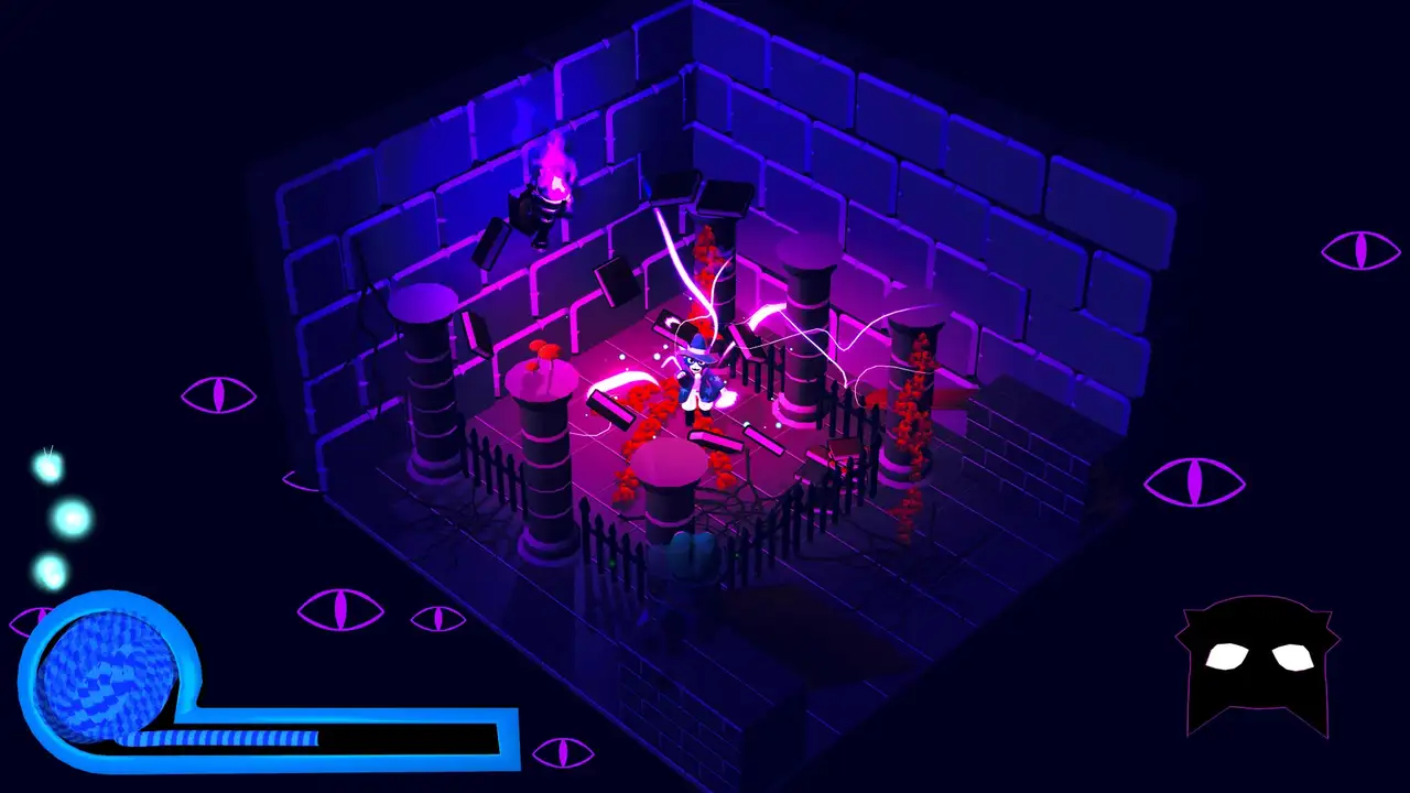 Внутри пространства каждый зал организован как головоломка: использование порталов и преобразование архитектуры предлагают игроку возможность менять расположение объектов, чтобы продвигаться дальше. Лапа персонажа выступает инструментом рисования глифов, превращая каждое взаимодействие в ритуал. В этом окружении мерцающий свет, минималистичная палитра и аудиовизуальные эффекты, вдохновлённые алхимией, подчёркивают атмосферу древней хроники, отделяющей этот мир от привычной реальности.
