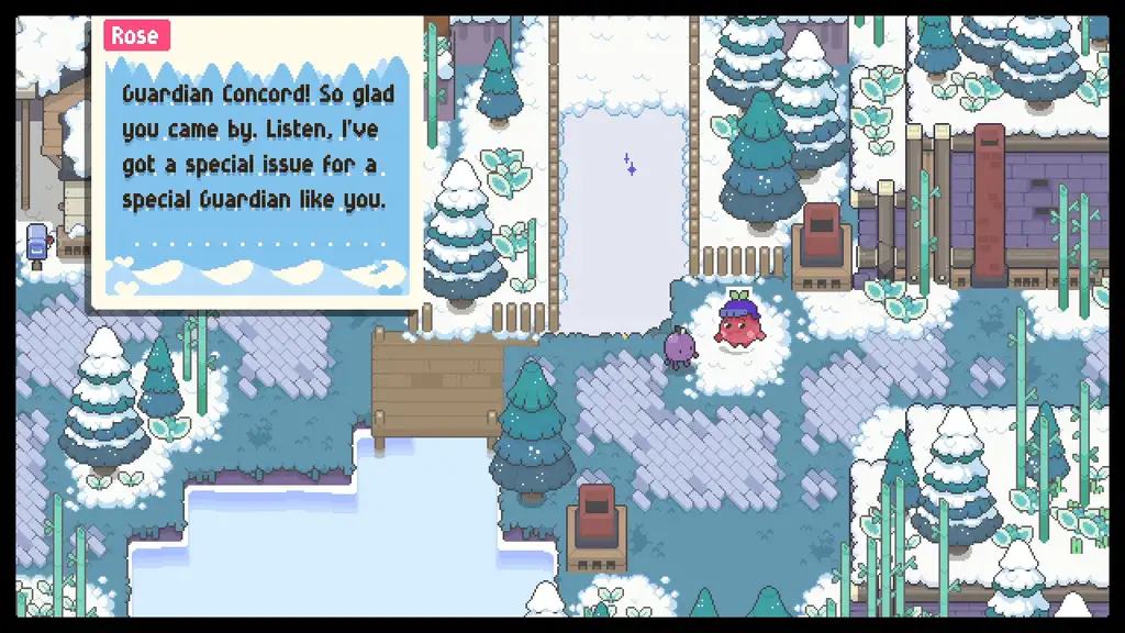 Garden Story – социальная ролевая игра с элементами симулятора и приключения, в которой игроку предстоит выполнить роль стража по имени Конкорд. Главный герой берет на себя ответственность за деревню и сталкивается с различными задачами, связанными с поддержанием порядка и устранением угрозы. На острове распространяется некая неизвестная болезнь, серьезно влияющая на состояние ландшафта и спокойствие его обитателей. В процессе исследования округа игрок обнаруживает новые области, встречает различных персонажей и взаимодействует с жителями, оказывая помощь в их повседневных заботах. Взаимодействия между Конкордом и другими представителями острова строятся на принципе взаимной поддержки, что позволяет формировать устойчивые социальные связи и эффективнее справляться с возникающими трудностями.
