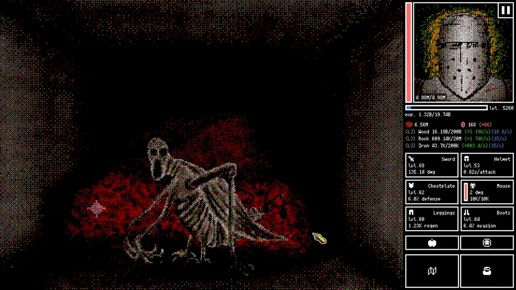 Разработка навыков, повторение действий и адаптация становятся частью стратегии выживания. Конечный этап игры включает встречу с богом подземелий, после чего игрок определяет свою значимость для глубин. Проект объединяет элементы idle-игры, автобоя и пазла, сочетая поочередные сражения с постоянным сбором материалов.