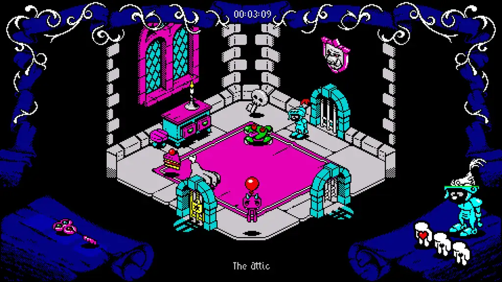 Melkhior's Mansion – видеоигра, в которой разработчики воспроизводят узнаваемую эстетику классических аркадных проектов 1980-х годов, используя цветовую гамму, основанную на ZX Spectrum. В игре применяется тщательно отобранная палитра из пятнадцати оттенков, при этом ярко-черный отсутствует, чтобы визуальный стиль соответствовал традициям оригинального оборудования и создал узнаваемую атмосферу ретро. В игровом процессе представлены динамичные механики, за счет которых участник сталкивается с разнообразными задачами и активно исследует внутренние пространства виртуального особняка. Визуальный ряд подчеркивает элементы геймплея, а графическое оформление соотносится с программными решениями прошлого поколения.