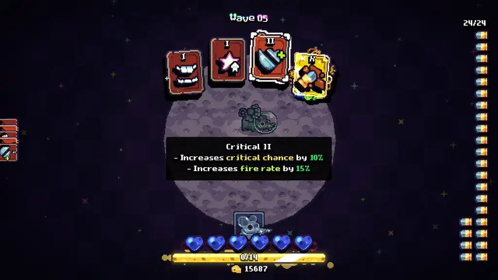 По мере прохождения игровой сессии появляется возможность настраивать развитие персонажа под личный стиль. Усиления открываются с помощью собранного сырья, которое далее расходуется на прокачку характеристик и приобретение дополнительных навыков через специальное дерево умений. Количество съеденного сыра влияет на длительность выживания и степень подготовки к следующим сражениям.