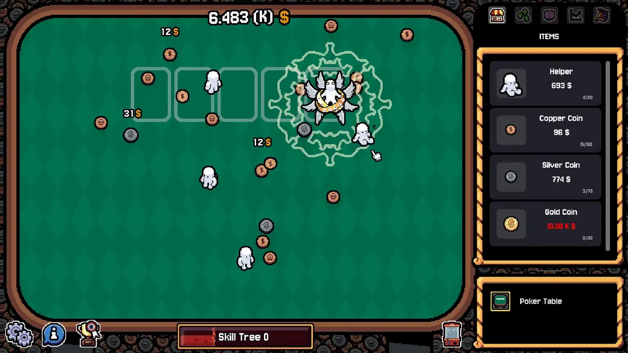 Gamblers Table оформлен в виде системы, сочетающей автоматизацию, прокачку и стратегическое управление накоплением. Пользователь сталкивается с необходимостью выбирать между немедленным результатом и потенциальными возможностями, оценивая риски и открывая более сложные уровни. Интегрированы механики идл-геймплея, гибкая структура апгрейдов и постепенно усложняющаяся система новых начинаний, что обеспечивает многоступенчатое взаимодействие с игровым процессом.