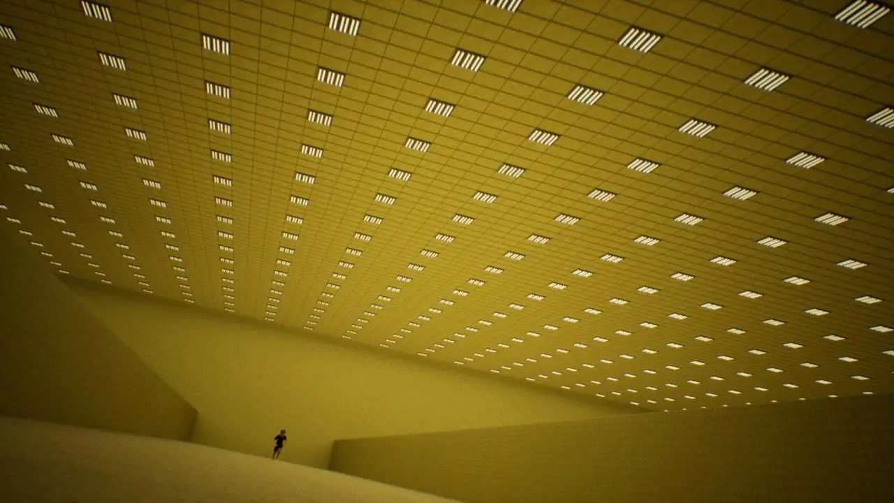 Перемещение по масштабным залам, протяжённым коридорам и запутанным переходам подкрепляет постоянное чувство неопределённости. Пространства напоминают найденные на стыке сна и реальности места, в которых одновременно ощущается знакомство и отстранённость. Архитектура каждой зоны варьирует, что формирует структуру исследования, превращающегося в последовательность находок и новых загадок.