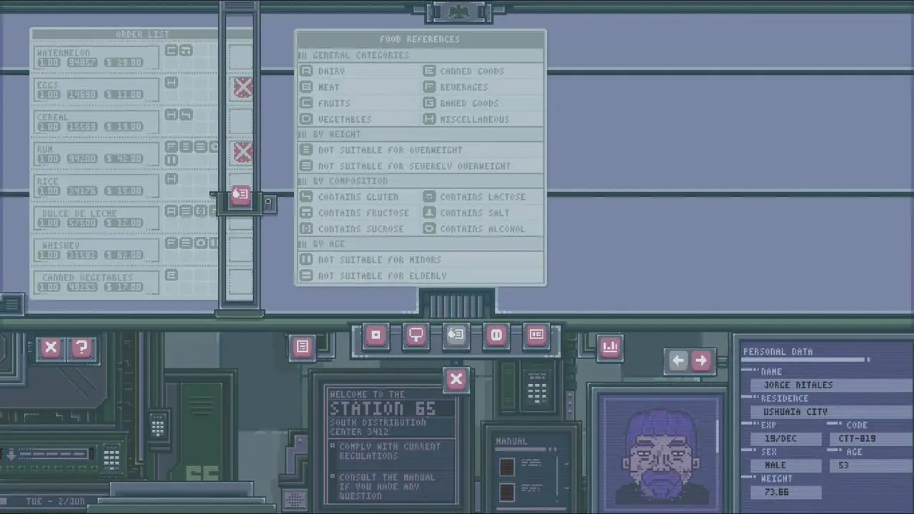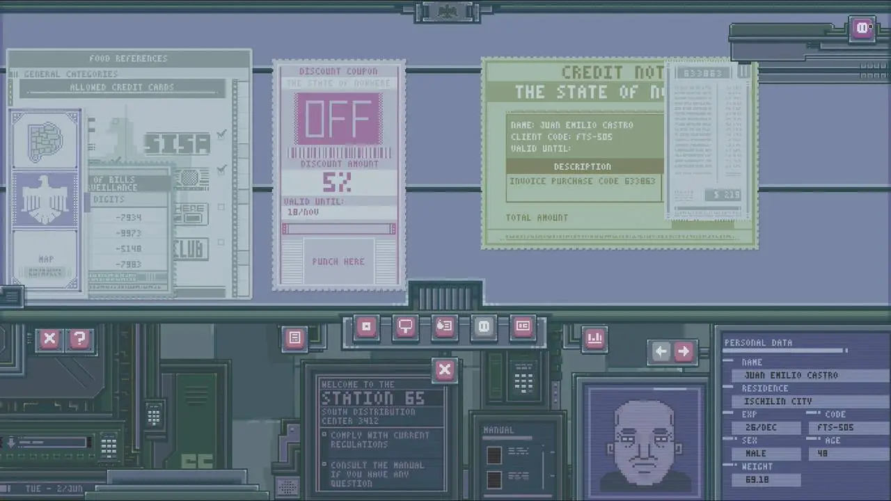 The State of Nowhere — проект, в котором игрок занимает должность сотрудника распределительного пункта при государстве с установленными жёсткими ограничениями. Эта симуляция предлагает взаимодействие с системой, где еда выступает главной единицей контроля и обмена. Рабочее пространство игрока организовано вокруг операционного стола, где ежедневно проходит поток граждан, каждый из которых приносит документы для проверки. Для продолжения работы требуется формально сверять заявки с регламентом: обнаруживать отклонения, выносить решения об одобрении или отклонении, фиксировать попытки подделок или нарушения инструкций. Система фиксирует все действия, при этом для каждого обращения предусмотрена вероятность появления сложных ситуаций, связанных с обращениями граждан или необходимостью выбора между точностью и личным взглядом.