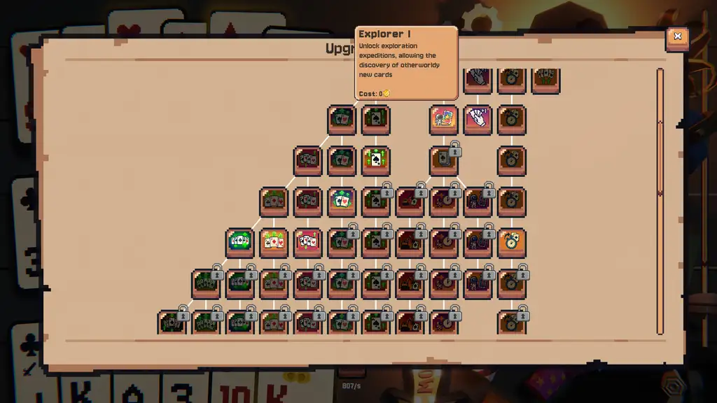 Игровой прогресс допускает заключение соглашения с Шутом для запуска цикла заново. В обмен на игровой ресурс, напоминающий покерные фишки, открывается возможность покупать усиленные улучшения. Карточная система строится вокруг постоянной оптимизации, повторяющихся испытаний и расширения коллекции посредством различных миссий.