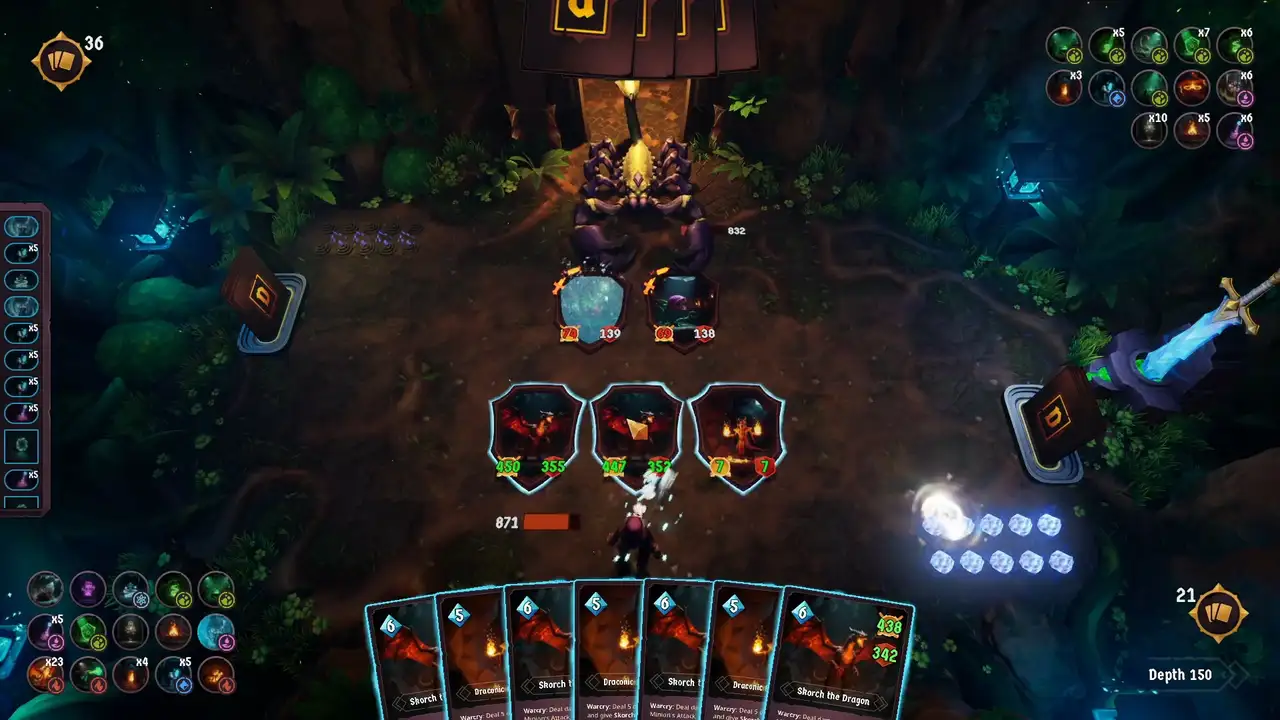 Ключевая игровая механика опирается на применение карт, ассоциированных с действиями и возможностями героя. Игрок подбирает и смешивает умения, повышая их эффективность с помощью собранных артефактов, открывая специфические комбинации для тактических решений. Любое неправильное использование потенциала может остановить продвижение вглубь.