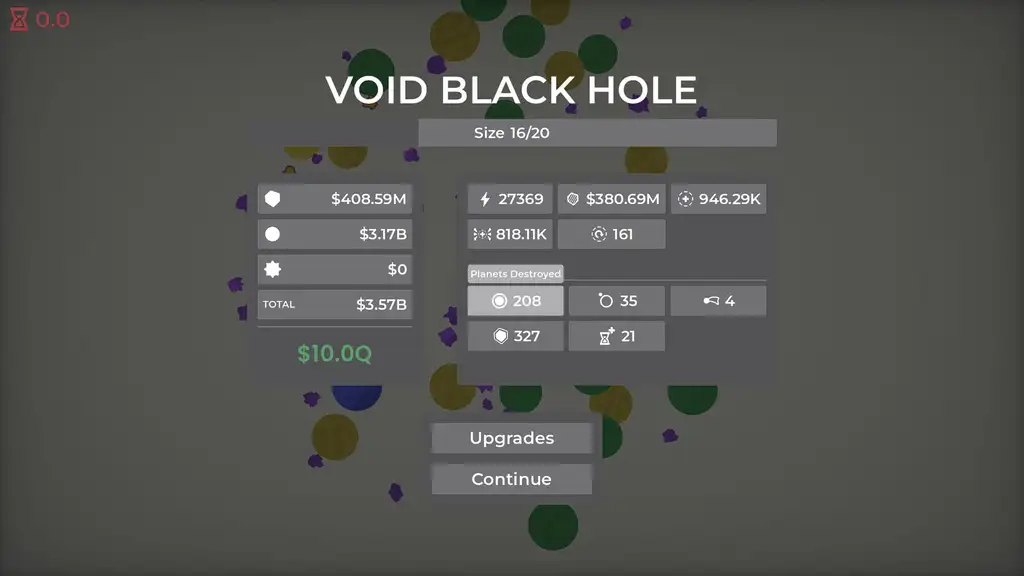 A Game About Feeding A Black Hole — игровой проект, в котором пользователь контролирует процессы роста и насыщения Черной дыры, используя для этого разнообразные космические объекты. Игрок управляет поэтапным поглощением материи, постепенно выводя на орбиту астероиды, после чего переключается на более крупные тела, такие как планеты, а позднее на звезды. В ходе игрового процесса механика требует принятия решений по выбору объектов для поглощения, чтобы эффективно увеличивать массу Черной дыры. С каждым этапом пользователь сталкивается с возрастающими задачами: выбирает последовательность уничтожения тел, следит за уровнем массы, а также управляет параметрами роста Черной дыры. Прогресс обеспечивается инкрементальными действиями и наблюдением за превращением отдельных астероидов, планет и звезд в источник дополнительной массы. Модель игрового процесса учитывает постепенное изменение баланса между размерами объектов и скоростью роста.