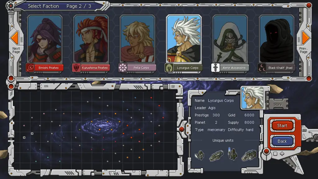 Chaos Galaxy – это пошаговая стратегическая игра, созданная в художественной эстетике классических стратегических проектов второй половины 1990-х и начала 2000-х годов для домашних игровых систем. Разработка, а также визуальное и концептуальное оформление игры осуществляются одним автором, что определяет ее уникальные художественные и технические особенности. В основе концепции лежит управление стратегическими действиями междузвездных флотов и продвижение своих интересов на фоне изменчивой политической карты обширной галактики. Игроку предоставляется выбор между четырьмя основными флотами, принадлежащими некогда мощной Галактической Империи, а также возможность возглавить одну из четырнадцати альтернативных фракций. Среди прочих присутствуют пираты, наемники, торговые объединения, различные ордены, группы убийц и автономные ИИ. Каждая из фракций включает отдельную сюжетную линию, индивидуальную политическую систему и собственные подходы к ведению боевых действий.