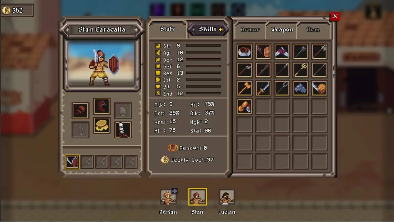 Gods of Sand — это тактическая RPG с элементами менеджмента, где ты развиваешь команду гладиаторов, участвуешь в боях и строишь собственную арену силы и влияния. Игровой процесс строится на подготовке к сражениям, выборе экипировки и управлении рисками, связанными с каждым выходом на арену. Бой как проверка подготовкиСражения требуют продуманного подхода. Использование оружия, брони и умений в нужный момент может решить исход поединка, поэтому важно учитывать не только характеристики, но и тайминг действий. Ошибки в бою наказываются, а успех зависит от того, насколько грамотно выстроена стратегия. Разнообразие экипировки и навыков открывает простор для экспериментов. Любой боец может использовать разные типы оружия и брони, что позволяет создавать нестандартные билды и подстраиваться под противников. Это делает процесс развития более гибким и даёт возможность находить собственные эффективные комбинации. Особенности игрыТактические пошаговые бои.Разнообразие экипировки и билдов.Управление командой гладиаторов.Развитие и восстановление школы.