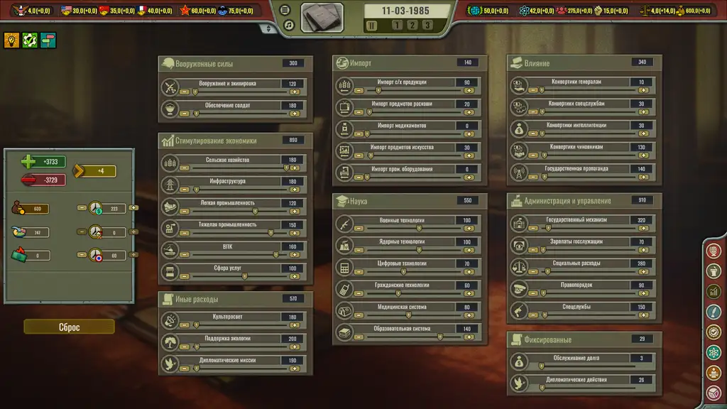 Игровая среда функционирует как детализированная модель сверхдержавы, где стратегические выборы определяют траекторию национального развития. Центральная дилемма заключается в сохранении существующего политического объединения либо конструировании альтернативной государственной модели.