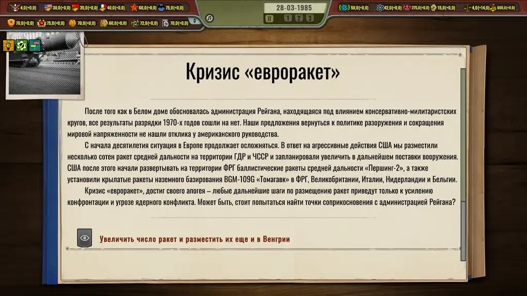 Кризис в Кремле: Холодная война - симулятор политического управления, где участник принимает командование Советским Союзом в период завершающего десятилетия государственного функционирования. Механика игрового процесса охватывает координацию экономических систем, формирование внешнеполитических связей и регулирование внутренних административных процессов. Дипломатические инструменты позволяют устанавливать контакты с международными партнерами, в то время как опосредованные военные конфликты служат средством территориального и идеологического расширения. Нарративная структура включает аутентичные исторические события наряду с гипотетическими сценариями развития, предоставляя возможность направлять советское государство по множественным траекториям. Спектр возможностей простирается от укрепления социалистических принципов до адаптации западных демократических институтов. Система разветвленных финалов реагирует на совокупность принятых решений, формируя индивидуальную интерпретацию исторического периода.