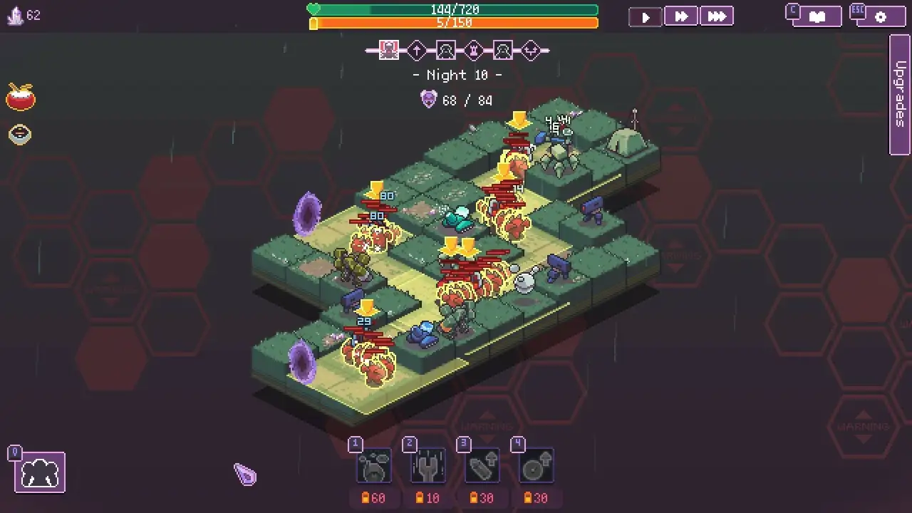 Механики геймплея строятся на балансе между строительством укреплений и их активным использованием в бою. Динамика возрастает по мере наступления ночи, поскольку противники становятся агрессивнее, а ресурсы сохраняют свою ограниченность. Исследование окружения приобретает ключевое значение ввиду скрытых угроз и возможностей для усовершенствования укреплений. Игроки анализируют среду, выявляют закономерности и используют комбинацию технологий и найденных артефактов для противодействия постоянно эволюционирующим врагам.